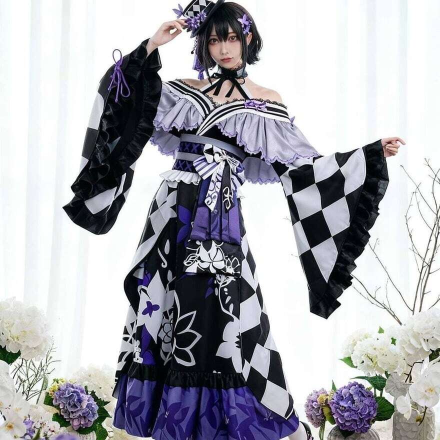 【和ゴス×退廃系】オフショル花魁ドレス|市松袖と紫グラデのサブカル衣装|天使と悪魔