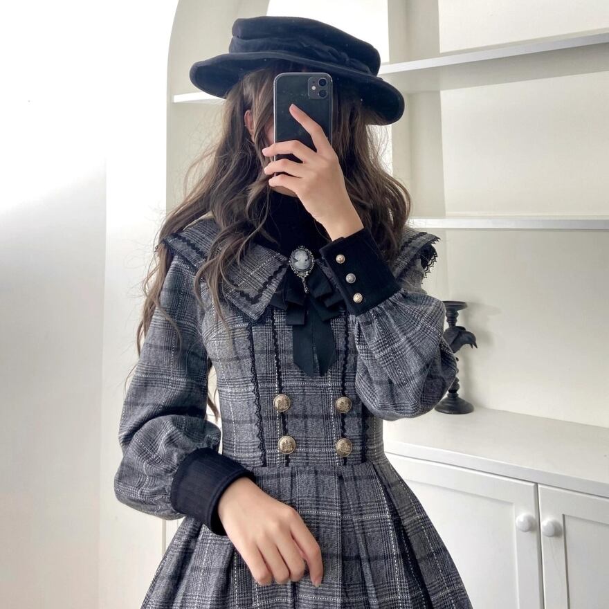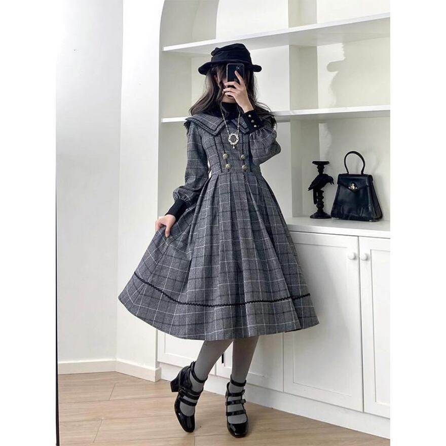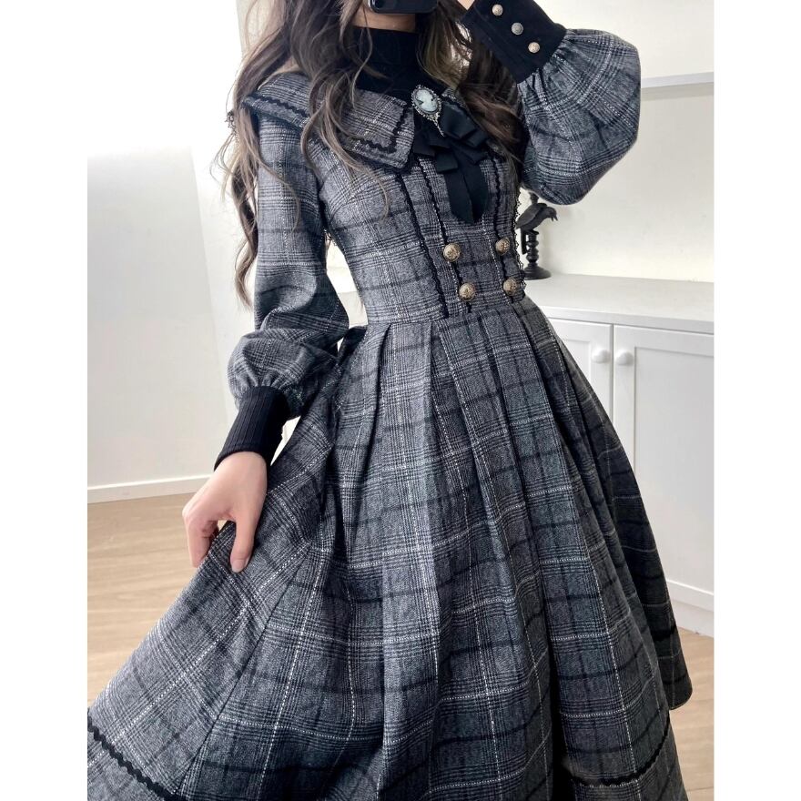 サブカル 服 地雷系 通販 クラシカルロリィタ ワンピース チェック柄 普段着使い お嬢様風 エレガント 甘め
