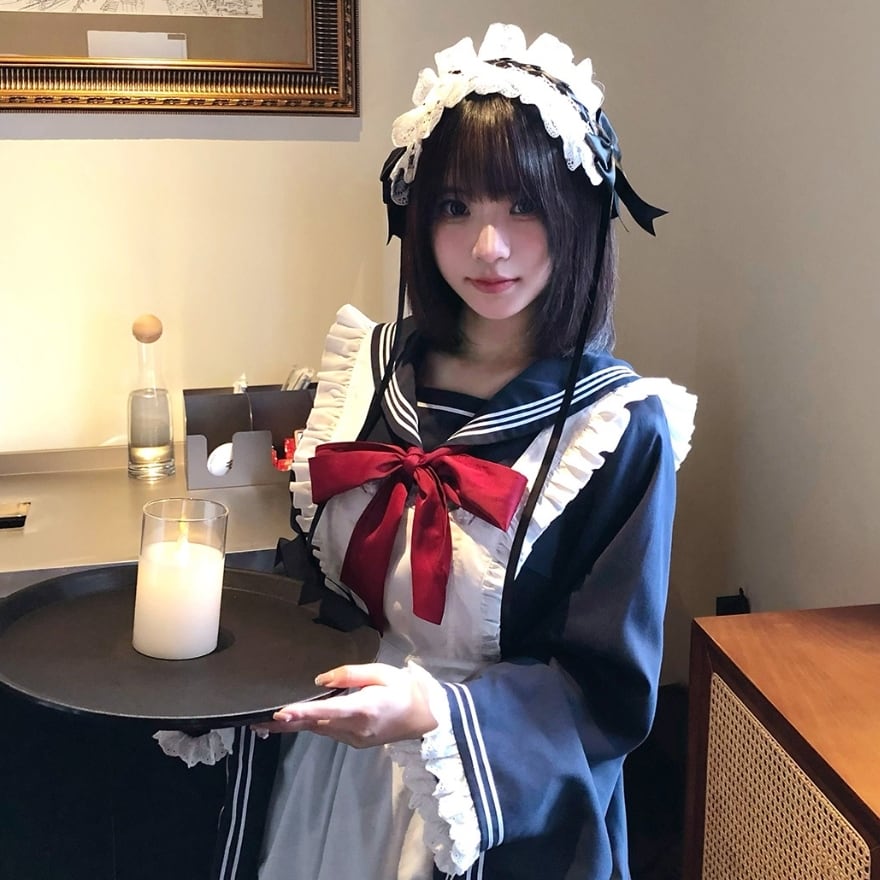 写真のセーラー風姫袖ワンピースのオプションのメイドエプロンです。