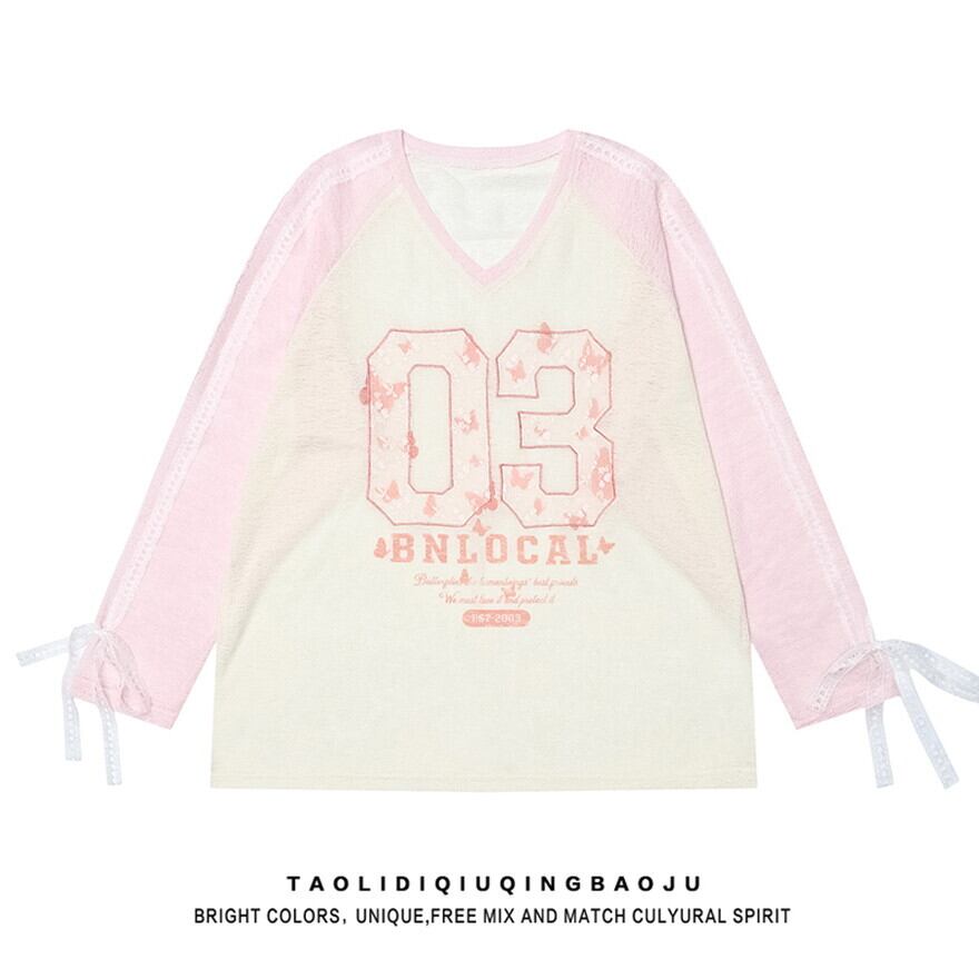 サブカル 服 地雷系 通販 ヴィンテージ風 アメカジ レトロ ストライプ ショルダー Vネック 長袖シャツ