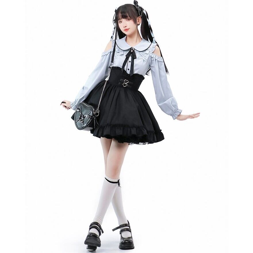 サブカル 服 地雷系 通販 コーデ セットアップ 長袖 ミニスカート オフショル フリル 可愛い レトロ 系ファッション 量産型