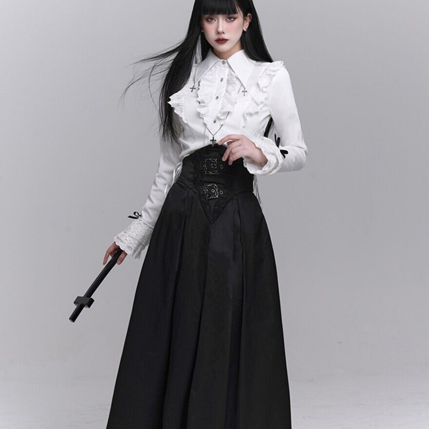 サブカル 服 地雷系 通販 服 スカート 黒ゴシック ハイウエスト ロング マキシ丈 ダークファッション レース 闇かわいい 大人ゴシック