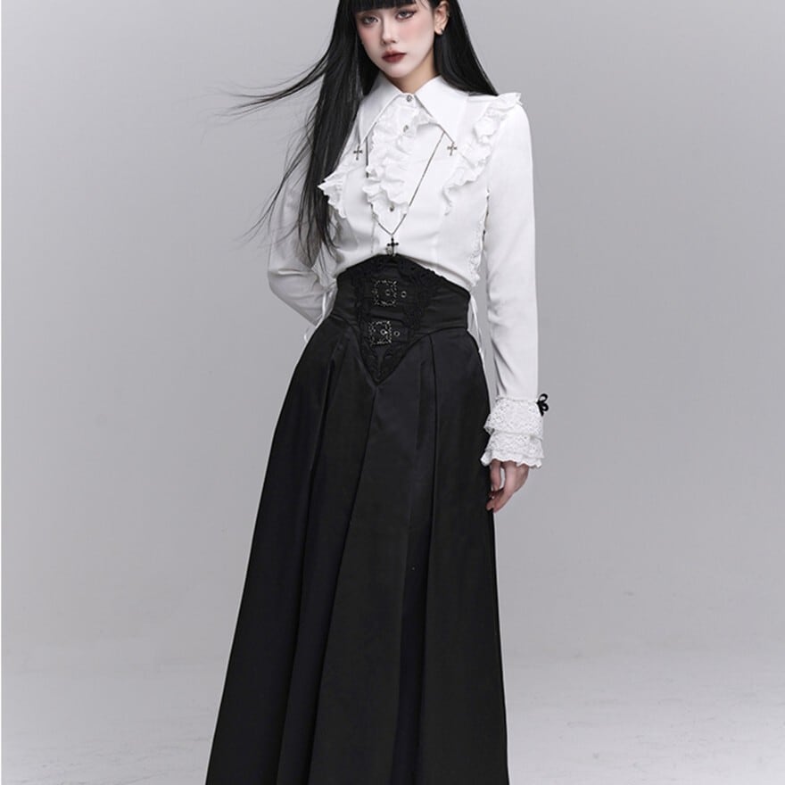 写真のシャツとコーデしてエレガントでダークゴシックなコーデが叶います。