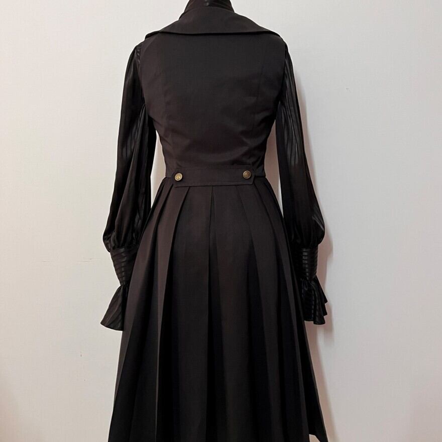 上品な光沢感のある生地と、シルエットが美しいデザインが、貴族のような雰囲気を演出します。
