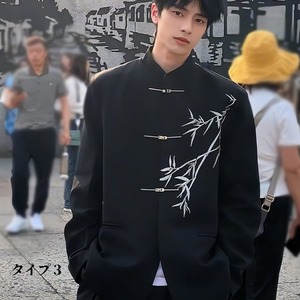 伝統的なチャイナボタンや中華刺繍がかっこいいストリートカジュアルなメンズジャケットとパンツです。