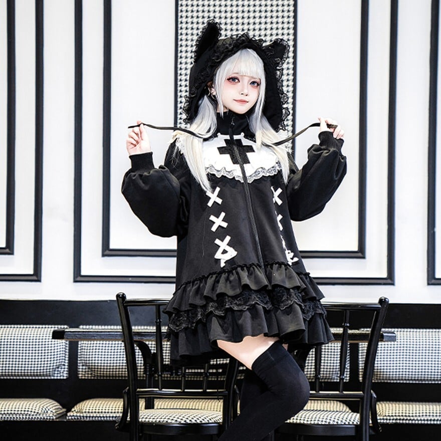 関連キーワード: #ゴスロリ #ロリィタ #ジャケット #レース #フリル #イベントコーデ #ゴスロリファッション #ゴスロリ好き #ゴスロリ女子 #猫耳フード