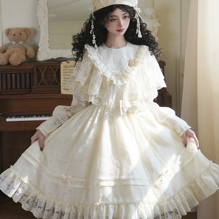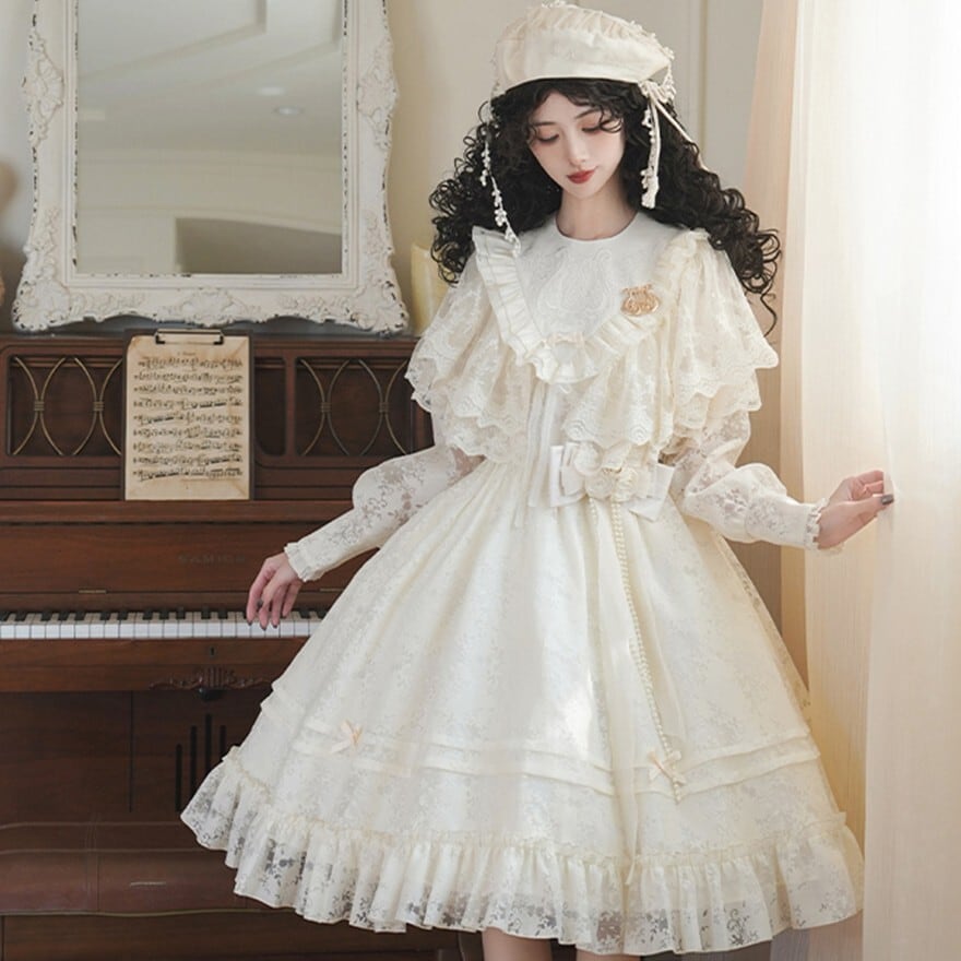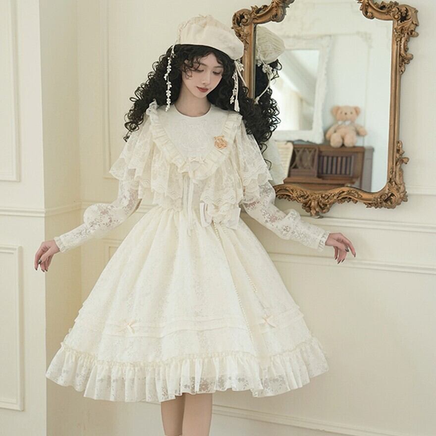 サブカル 服 地雷系 通販 クラシカル ロリィタ PUJIオリジナル ケープ レース ホワイトロリィタ 天使界隈