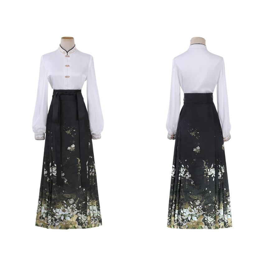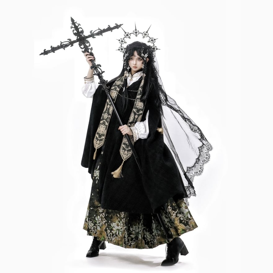 "チャイナドレスの要素を取り入れた、オリエンタルな魅力溢れる中華ロリィタの3点セットアップです。上品な色合いと、繊細な刺繍やチャイナボタンなどの装飾が、他のロリィタ服とは一味違う個性を演出します。
