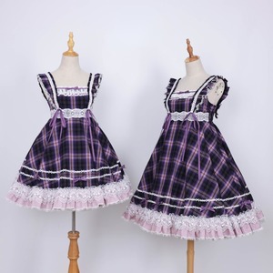 サブカル 服 地雷系 通販 甘ロリ エンドレスサマー ジャンパースカート チェック柄 ハイウエスト 双子コーデ お茶会 撮影会衣装
