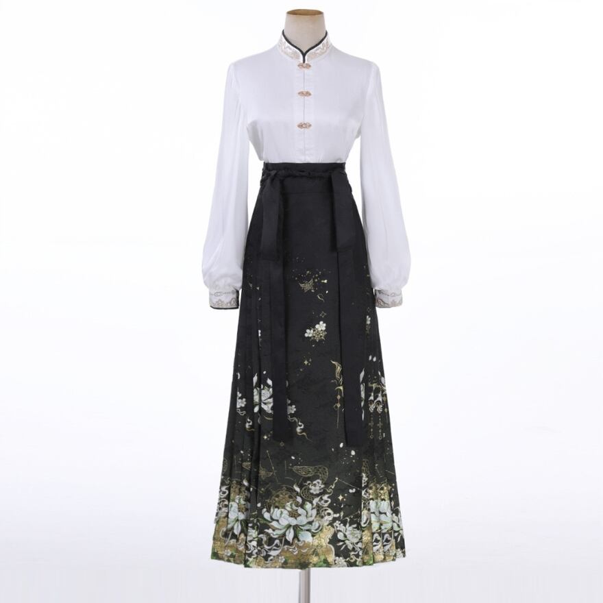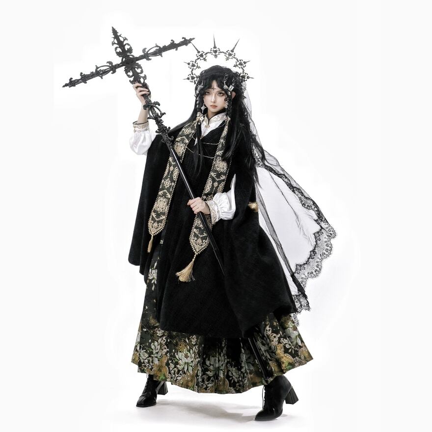 チャイナドレスの要素を取り入れた、オリエンタルな魅力溢れるロリィタ衣装です。上品な色合いと、チャイナボタンや刺繍などの装飾が、他のロリィタ服とは一味違う個性を演出します。
