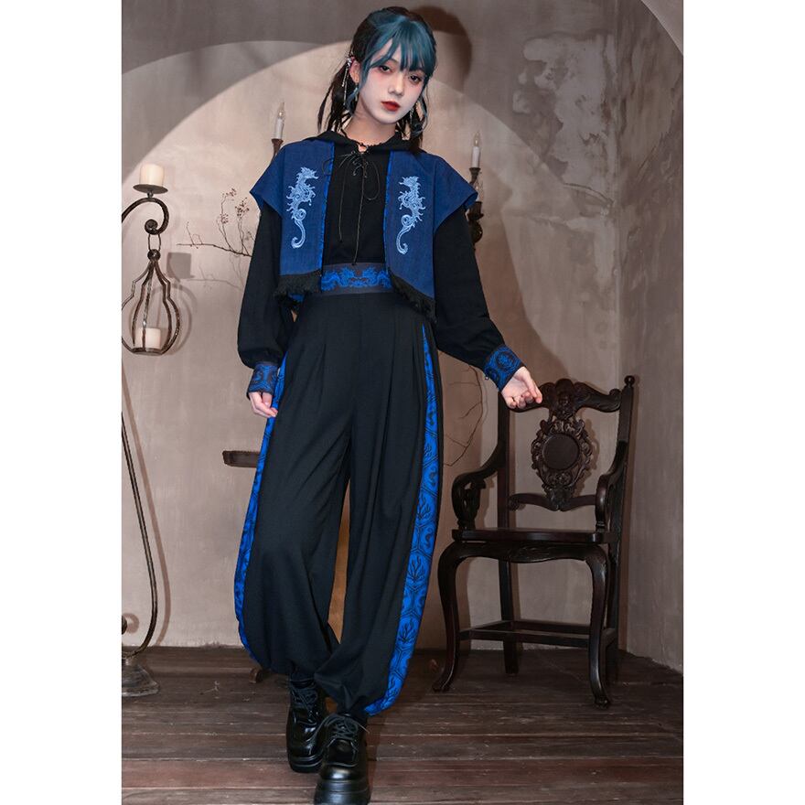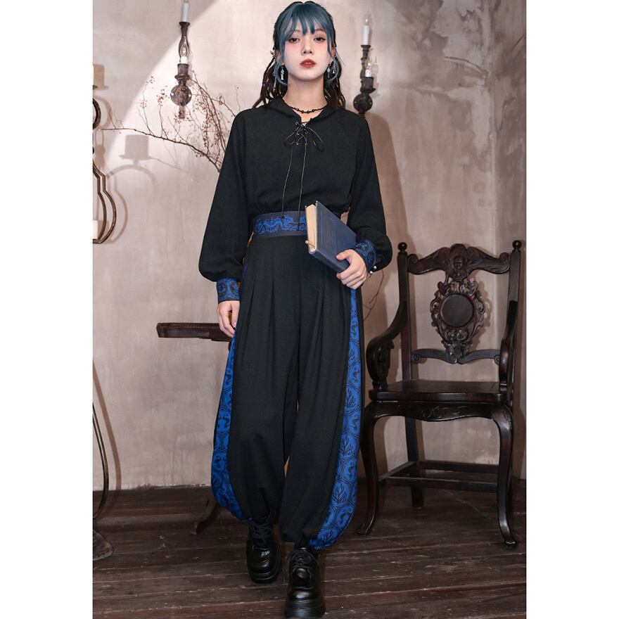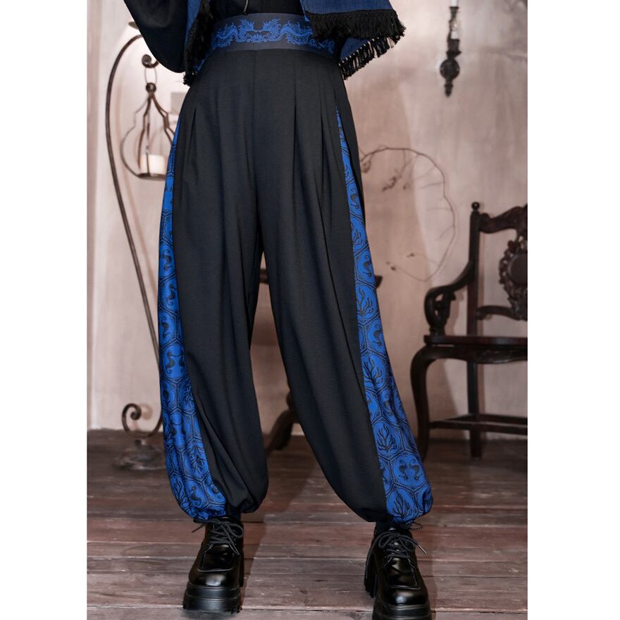 サブカル 服 地雷系 通販 チャイナ風 中華系 ファッション チャイナ服 チャイナ風服 古怪舎 パンツ ワイドパンツ スリット プリーツ 民族調 プリント柄 レトロ 中華系ファッション