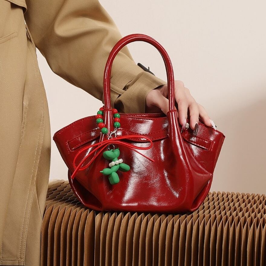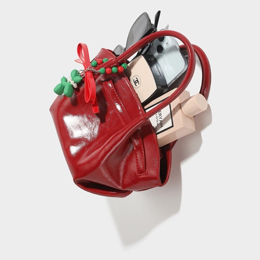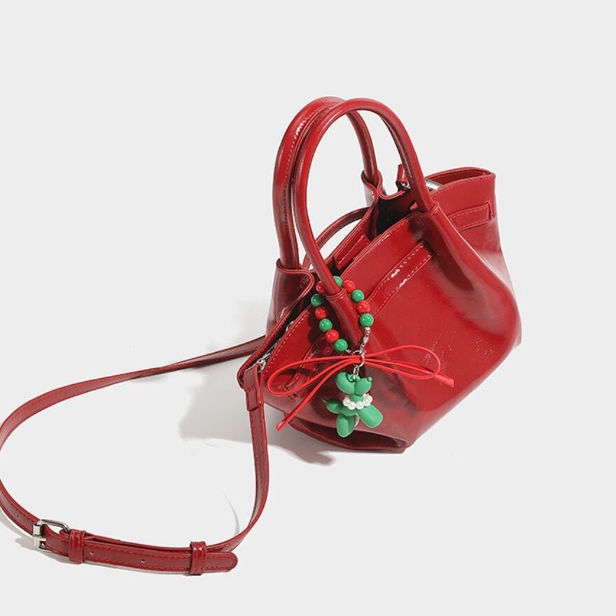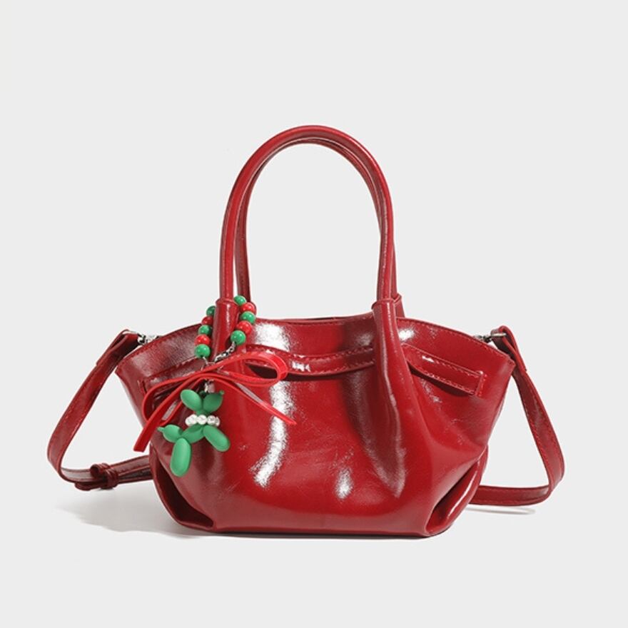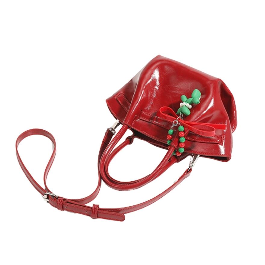 艶やかな赤、ふっくらとしたギャザーハンドル、そして遊び心あふれるチャームが、あなたのロリータファッションをより一層華やかに彩ります。