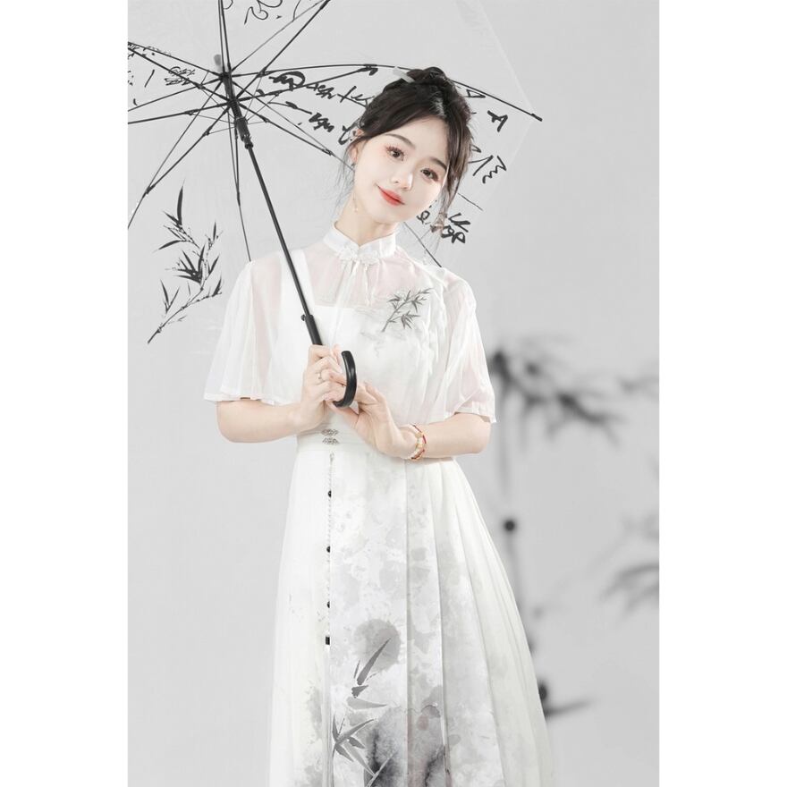 関連キーワード: #チャイナ風 #セットアップ #ケープ #ジャンパースカート #墨絵風 #東洋風 #夏服 #涼しい #上品 #女性らしい