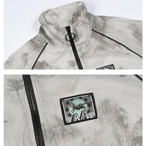 ライトジャケット/ブルゾン(水墨画プリント、スタンドカラー、ポケット付き)