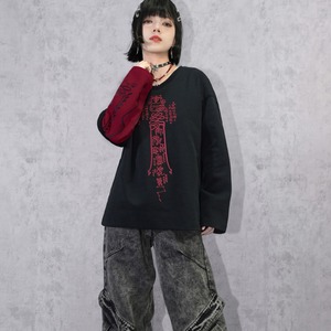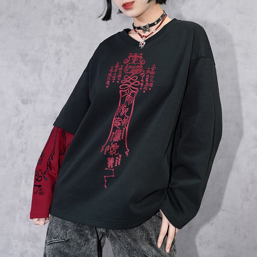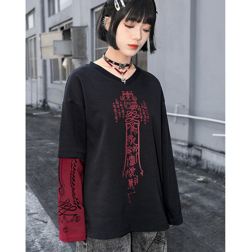 関連キーワード: #チャイナファッション #サブカルファッション #長袖Tシャツ #ロンT #バックプリント #グラフィックT #ダークファッション #ストリートファッション #ユニセックス #個性派ファッション #骨モチーフ