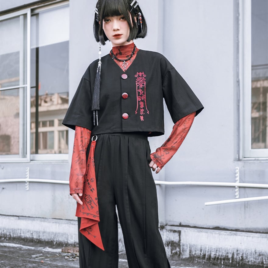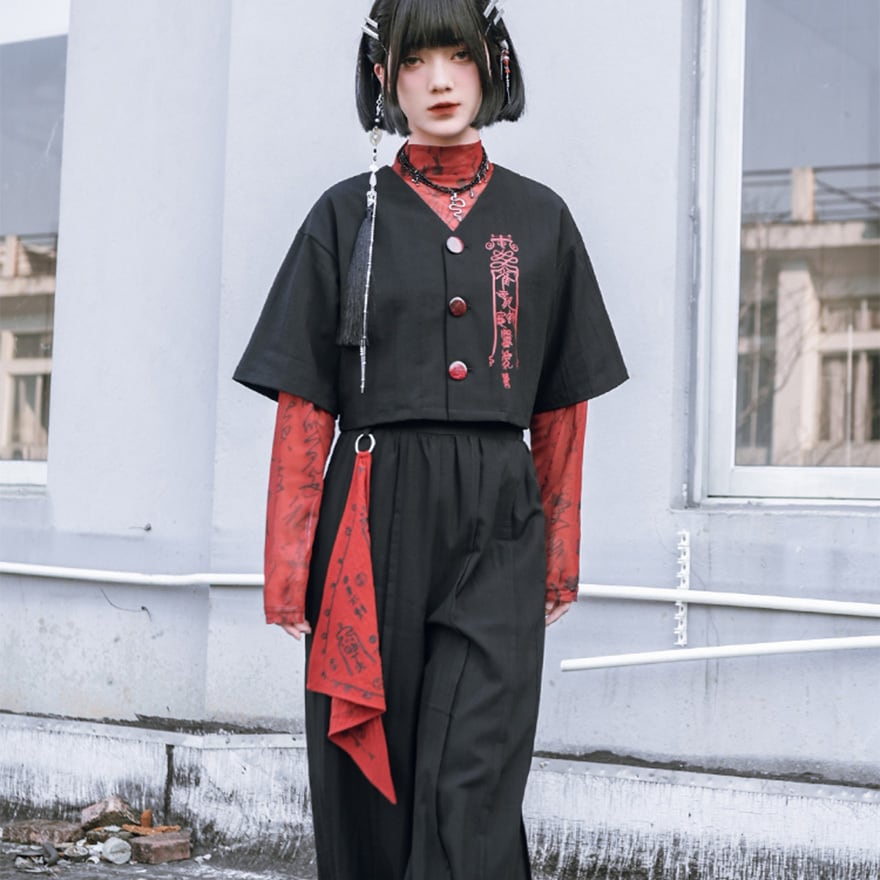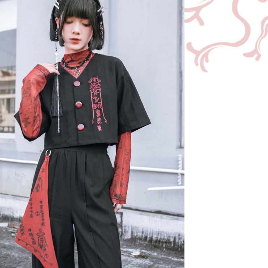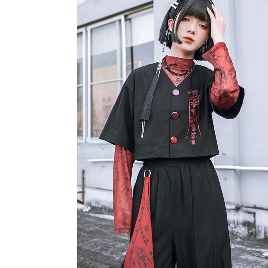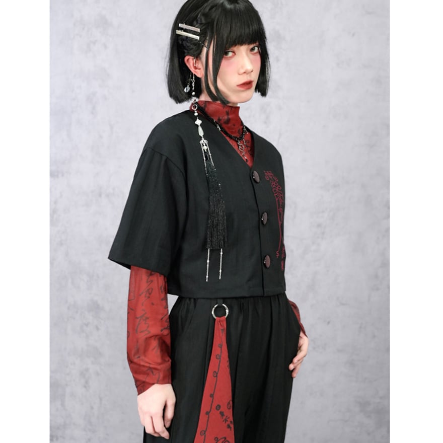 サブカル 服 地雷系 通販 チャイナ風服 古怪舎 半袖シャツ バックプリント チャイナ風服春夏服