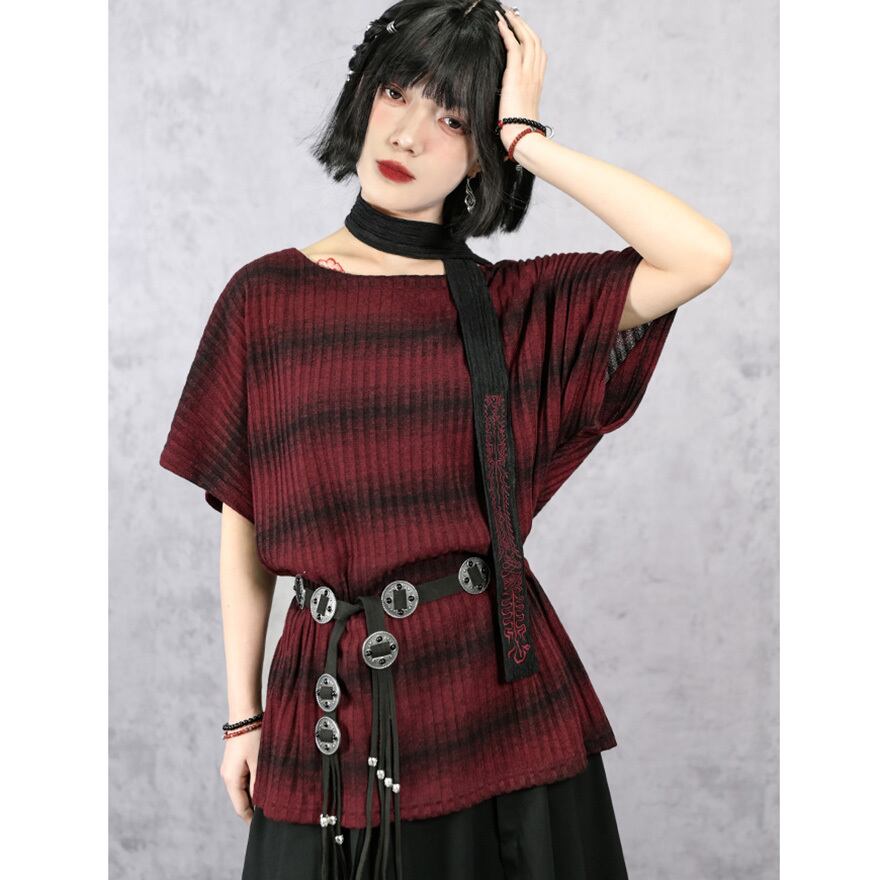 関連キーワード: #チャイナファッション #サブカルファッション #半袖ニット #ニットトップス #ストライプニット #個性派ファッション #リラックススタイル #着回し #ストリートファッション #サマーニット