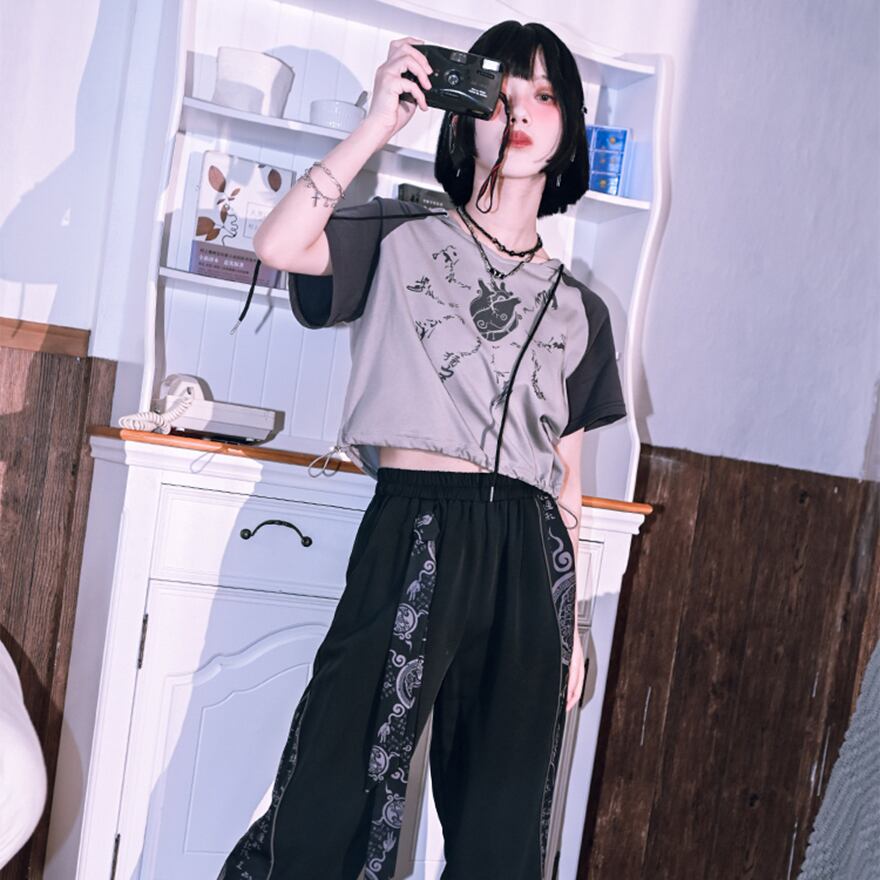 関連キーワード: #古怪舎 #サブカル系 #チャイナ風 #中華系ファッション #ミニ丈Tシャツ #クロップド丈 #半袖Tシャツ #夏のファッション #プリントTシャツ