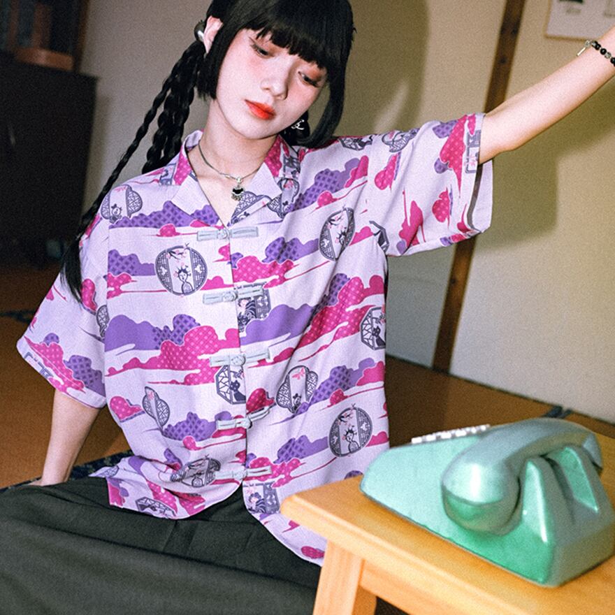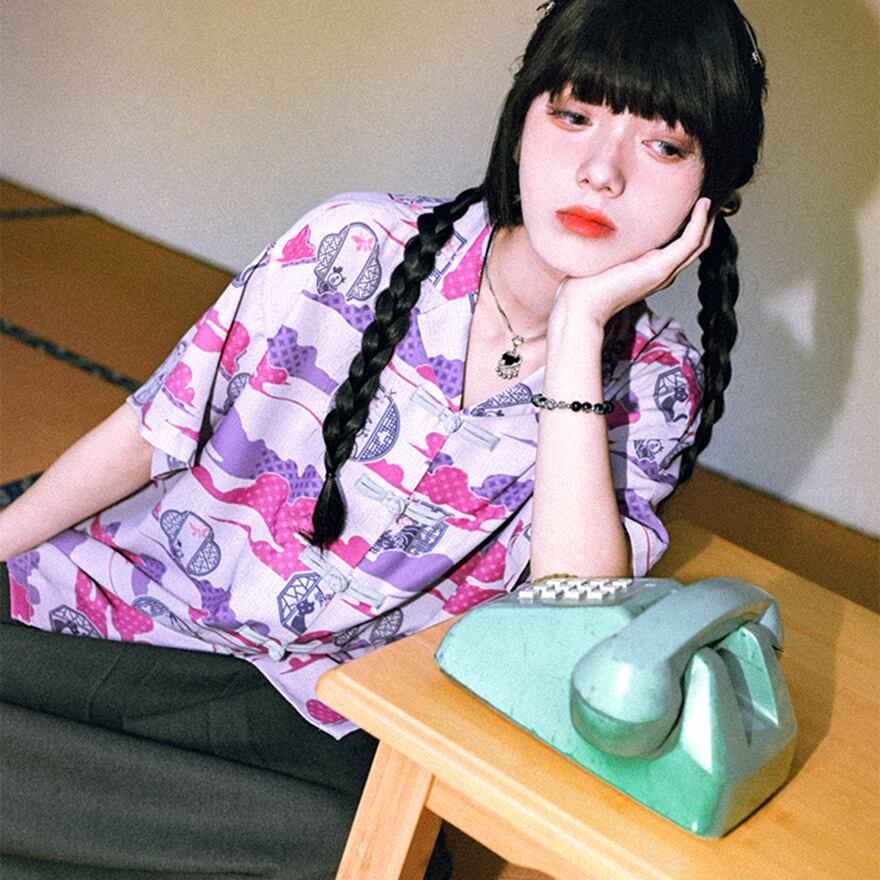 サブカル 服 地雷系 通販 チャイナ風服 古怪舎 半袖シャツ チャイナ風服春夏服