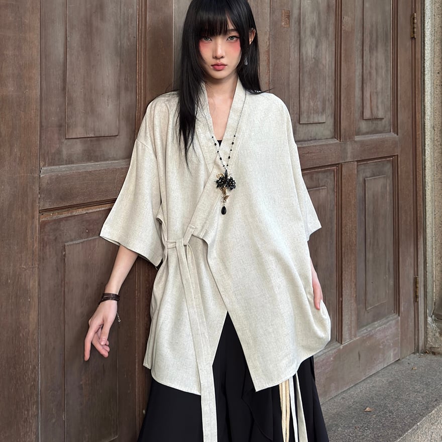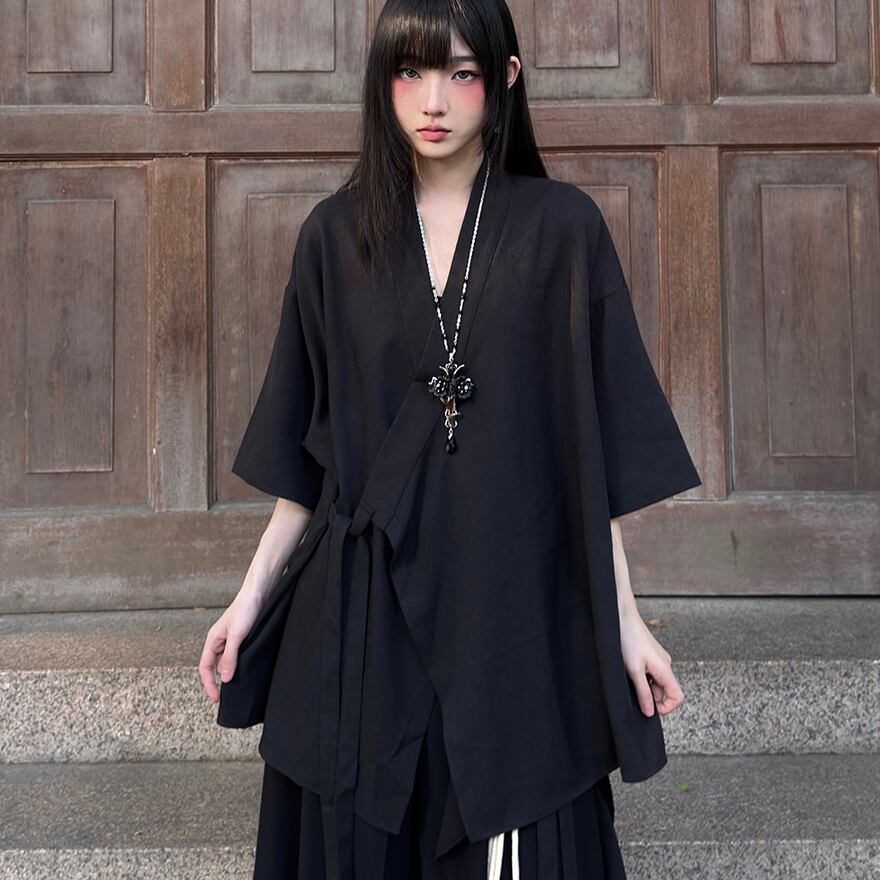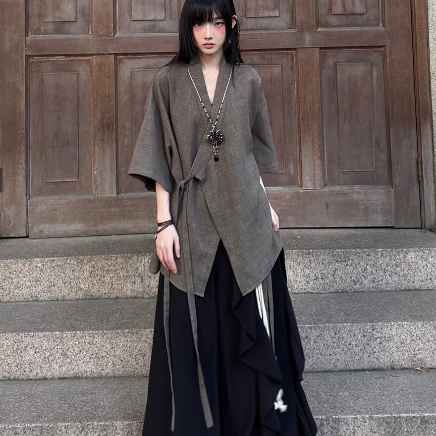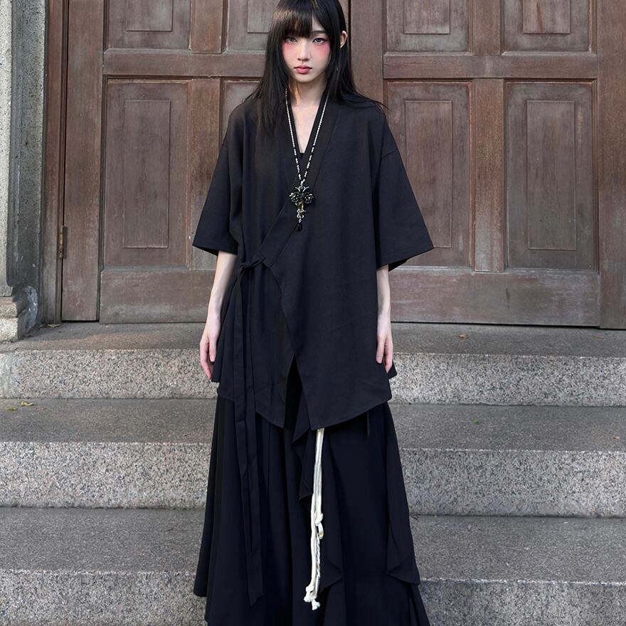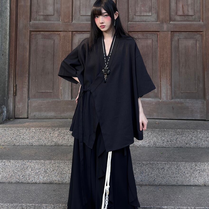 纏うだけで独特の世界観を創り出す、ミステリアスな山本耀司風のチャイナトップス