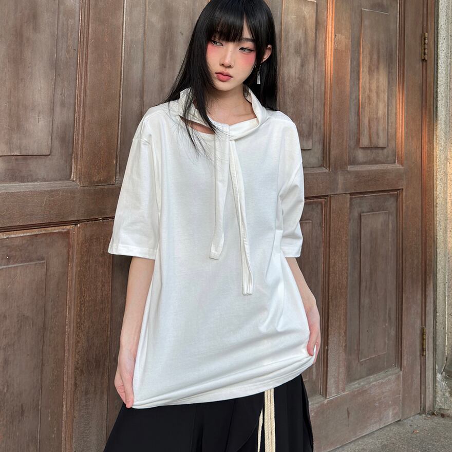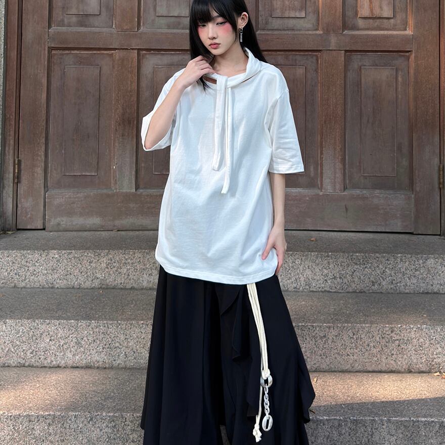 このTシャツは、サブカル系ファッションの必須アイテム。ホワイトとブラックのシンプルなカラー展開が、どんなスタイルにもマッチし、自由なコーディネートを楽しめます。ゆったりとしたシルエットが、リラックスした雰囲気を演出しつつも、個性を引き立てるデザインです。