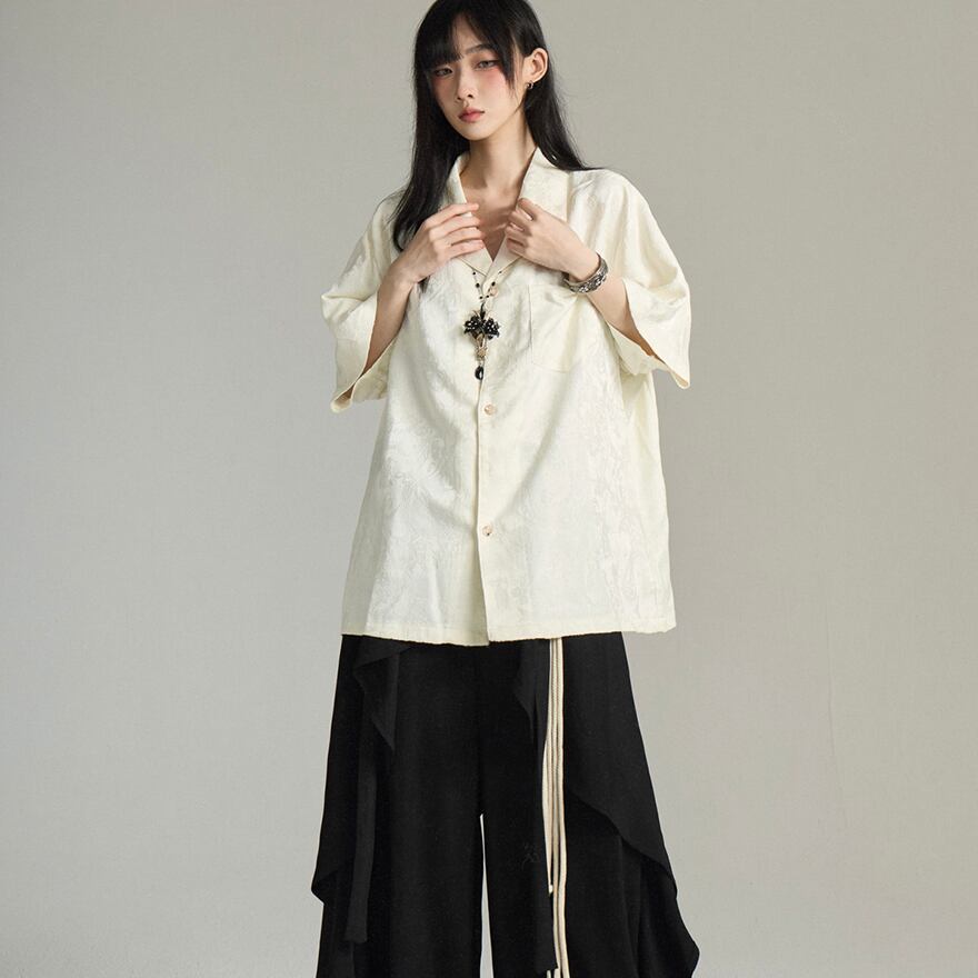 関連キーワード: #チャイナ風シャツ #アイボリー #サブカル #ストリートファッション #カジュアルコーデ #個性派 #デイリーユース
