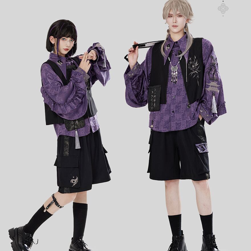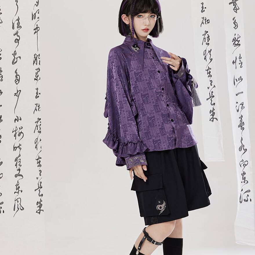 サブカル 服 地雷系 通販 チャイナ風服 トップス シャツ 長袖 タッセル付き ユニセックス 夏服 卿棠オリジナル