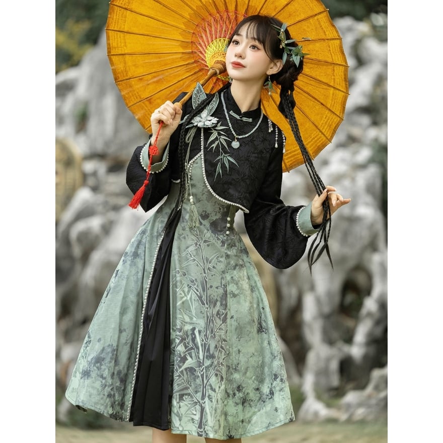 関連キーワード: #チャイナファッション #中華系ファッション #セットアップ #羽織 #シャツ #ジャンパースカート #レース羽織 #プリント柄 #竹柄 #上品 #クラシカル #中華ロリィタ #撮影会 #お茶会