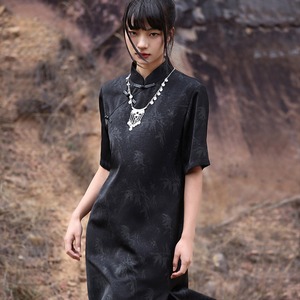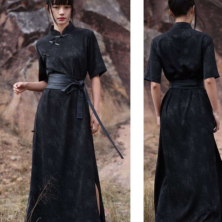 漆黒の闇を纏うような、ミステリアスなチャイナ風ロングワンピース。