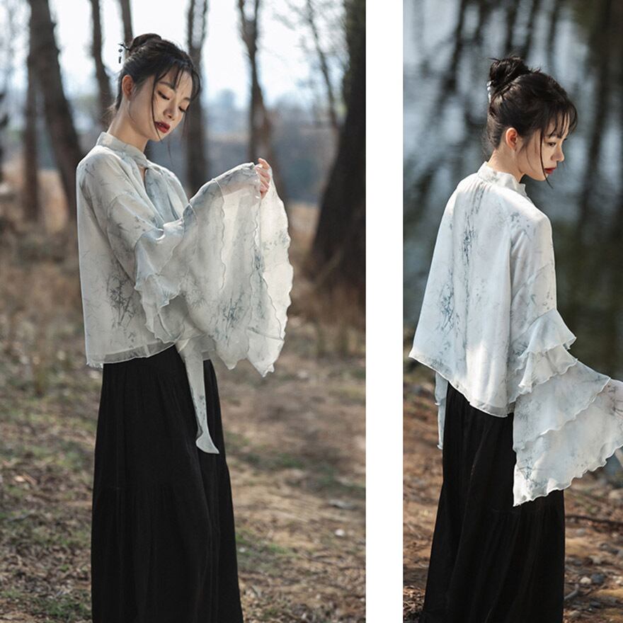 関連キーワード: #シフォンブラウス #ボウタイブラウス #フリル袖 #水墨画風 #和風 #中華風 #サブカル #地雷系 #病みかわいい #アンニュイ #儚げ #ゴシック #モード #ジェンダーレス