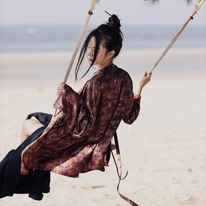 深淵なるレッドに、ゴールドの光沢が揺らめく??まるで纏う芸術品のような、退廃的でエキゾチックな雰囲気漂う羽織りジャケットです。