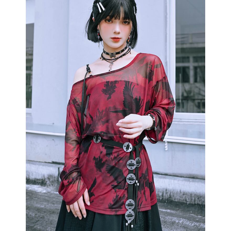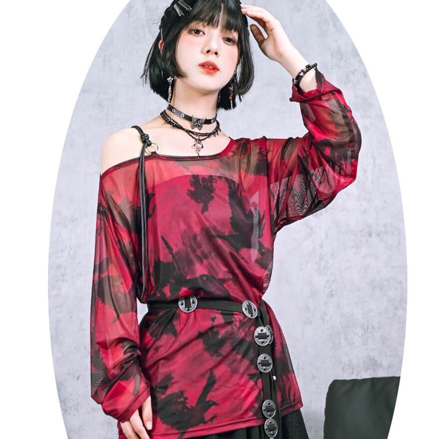 関連キーワード: #サブカル #地雷系 #古怪舎 #長袖シャツ #オープンショルダー #メッシュ #病みかわいい #ストリート系 #ユニセックス #グラフィック