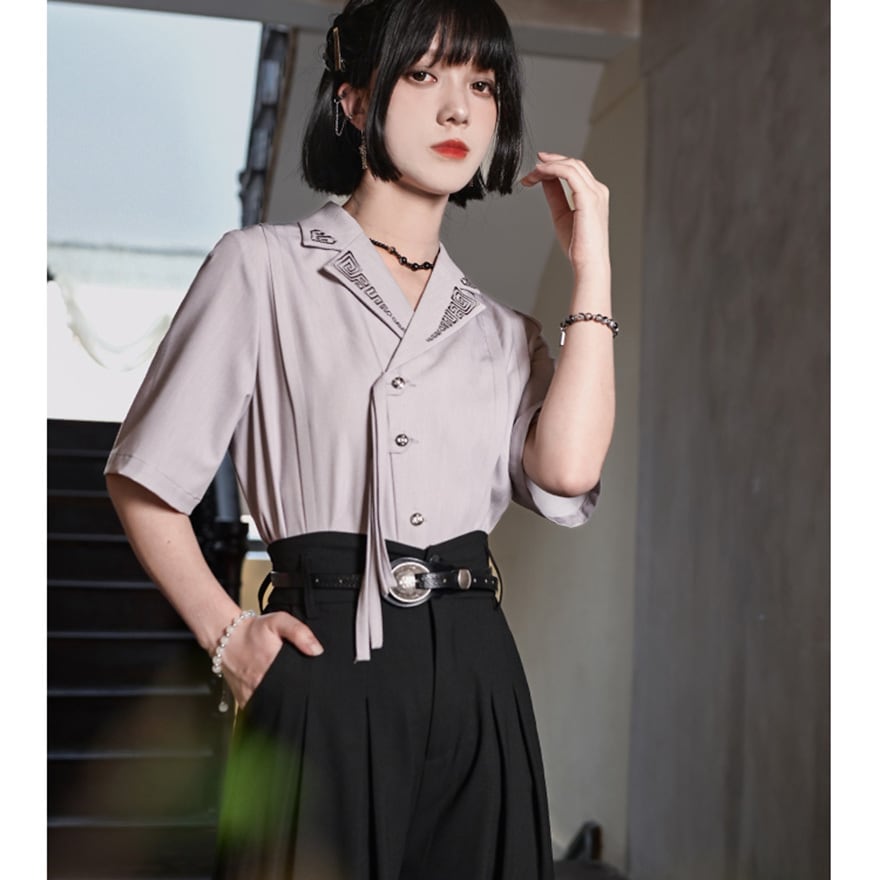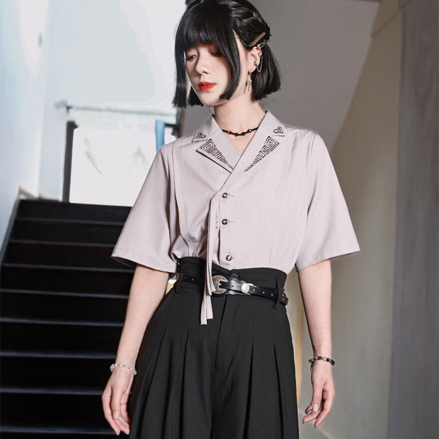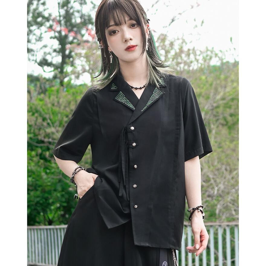 サブカル 服 地雷系 通販 チャイナ風服 古怪舎 半袖シャツ 刺繍 開襟シャツ 夏服 中華系ファッション