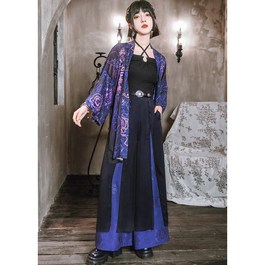 サブカル 服 地雷系 通販 チャイナ風服 古怪舎 袴パンツ ワイドパンツ バイカラー シフォン レイヤード 中華系ファッション