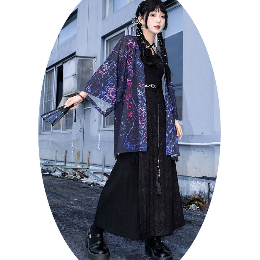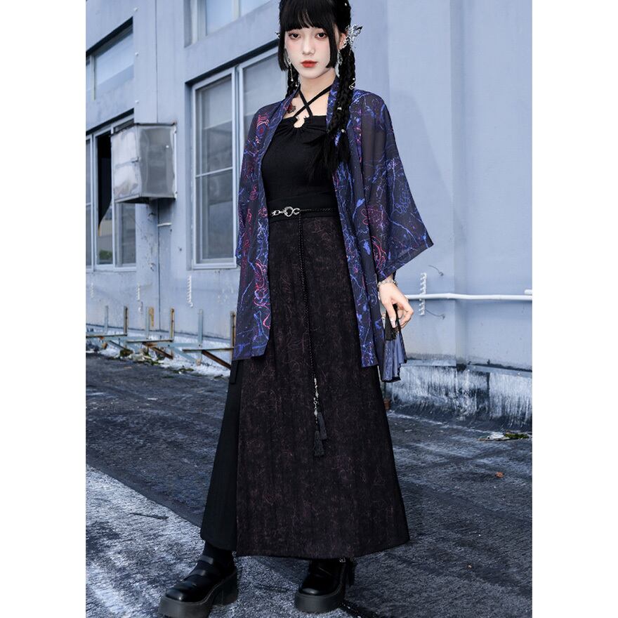 サブカル 服 地雷系 通販 チャイナ風服 古怪舎 プリーツ ロング丈 スカート レイヤード ハイウエスト 中華系ファッション