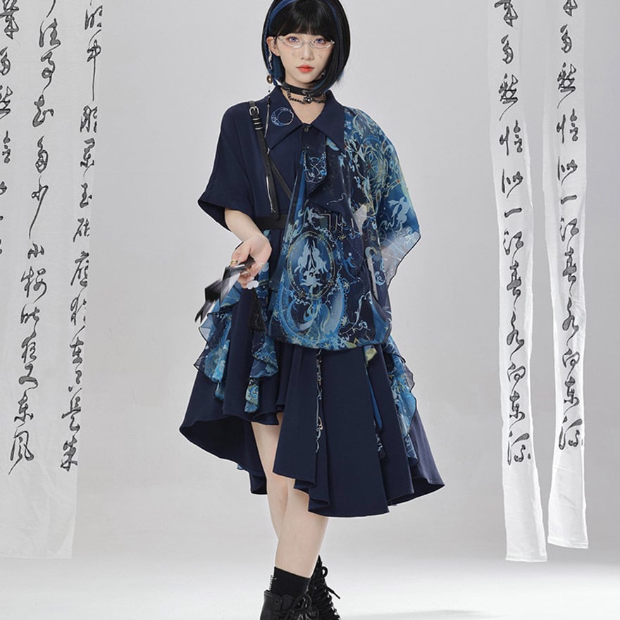 卿棠オリジナルから、幻想的な世界観を纏うネイビーのアシンメトリーワンピースが登場。
