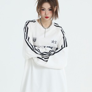 ロゴがプリントされた英字デザインが特徴的です。ブラック、ホワイト、ネイビーの3色展開で、サブカル系のファッションに最適な一着です。ゆとりのあるシルエットが特徴で、リラックスした着こなしが楽しめます。