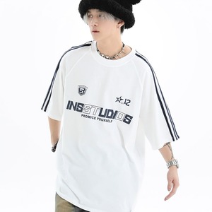 古着のような風合いが魅力のINS復古アメカジ半袖Tシャツが登場!しっかりとした厚みのある生地を使用しているから、肌触りは柔らかく、着心地は抜群。夏でも快適に過ごせます。シルエットはトレンド感のあるゆったりとしたビッグシルエットで、体型を選ばずにラフに着こなせます。肩から袖にかけて入った三本ラインと、存在感のある英字ロゴプリントがストリートな雰囲気を演出。
