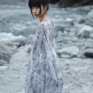 関連キーワード: #チャイナ風 #中華服 #カーディガン #ロングシャツ #シフォン #プリント #水墨画風 #竹 #鳥 #大青龍肆 #夏服 #羽織り #薄手 #涼しい #和風 #サブカル #個性的 #モード #20代ファッション #30代ファッション #ライトアウター #シアー