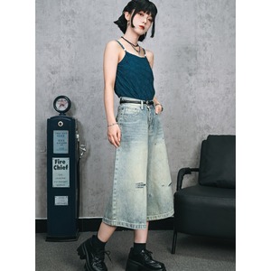 絶妙なダメージ加工と7分丈の軽やかさが、夏のカジュアルスタイルにこなれ感をプラス。