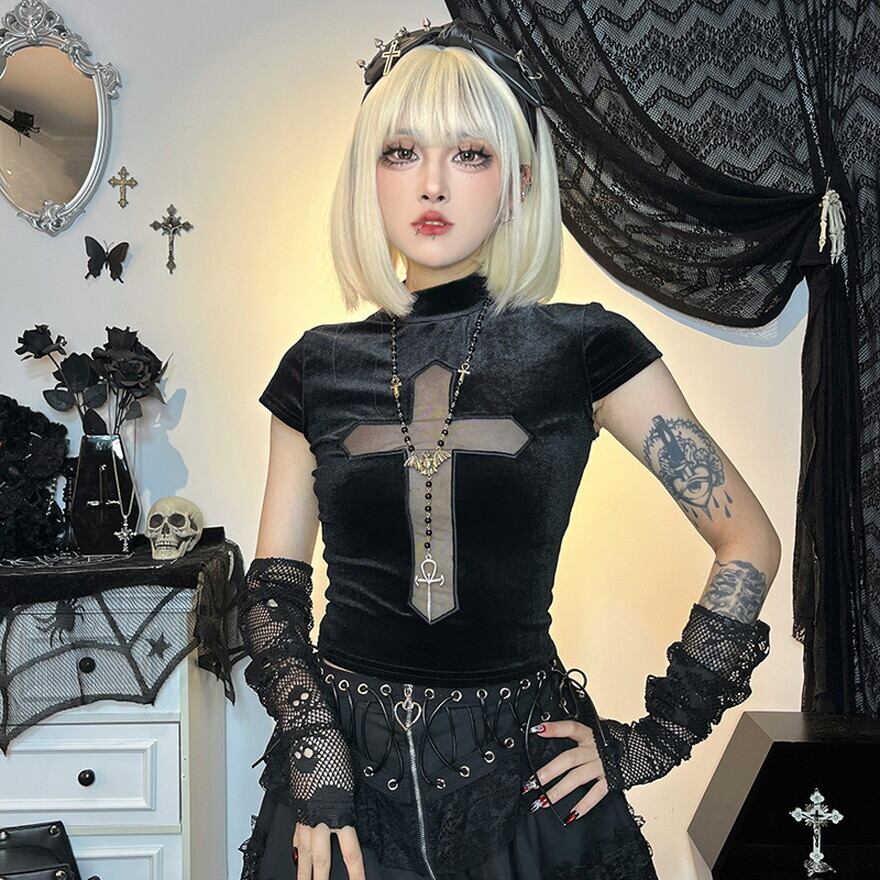 #ゴシック #トップス #クロス #シースルー #ベロア #イベント衣装 #モノトーン #地雷系 #V系ファッション #闇かわいい #黒コーデ #クラブファッション
