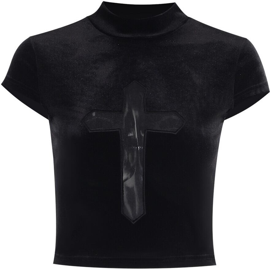 ブラックベロア素材を使用した、クロスモチーフが印象的なゴシックトップスです。
