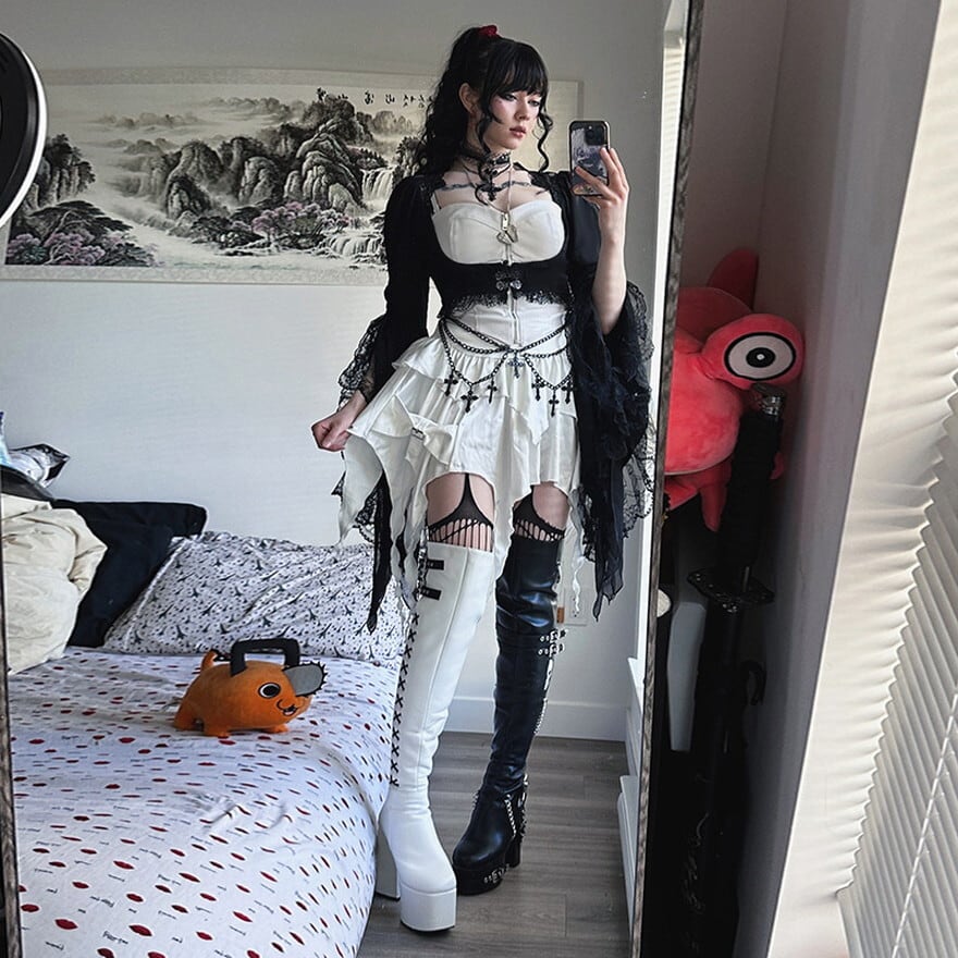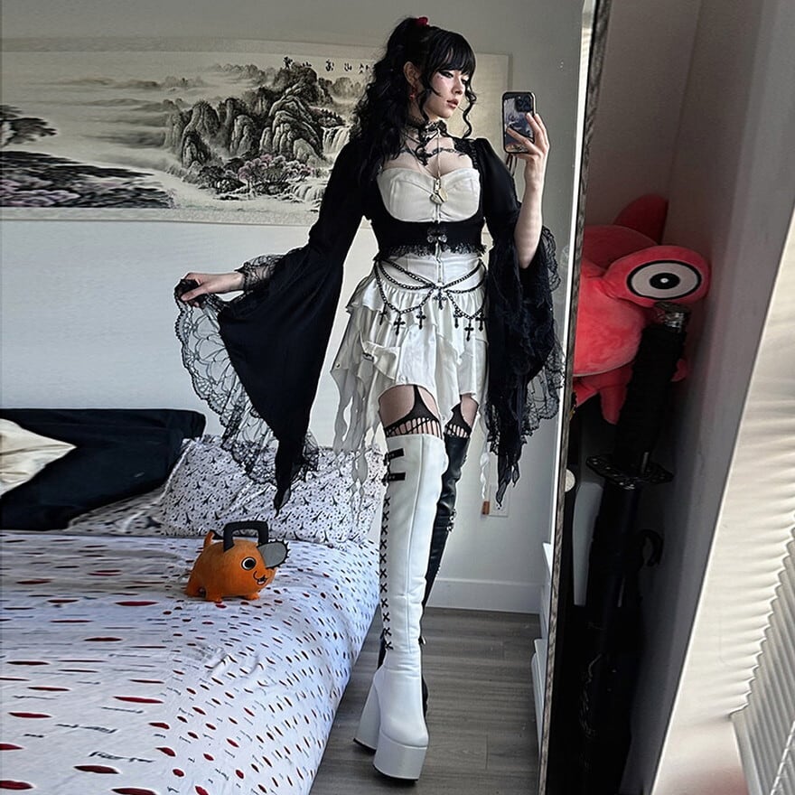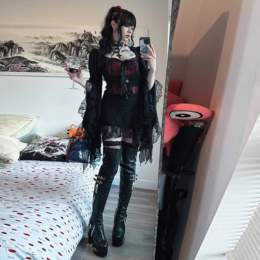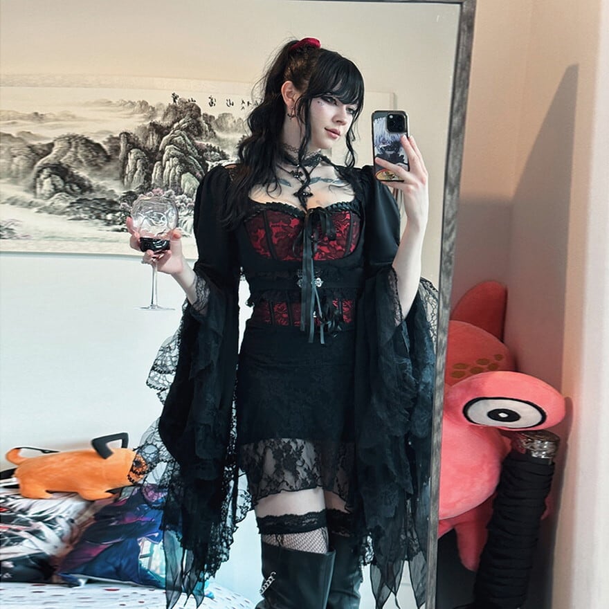 #ゴシック #ロリータ #ボレロ #地雷系 #YamiKawaii #レース #モノトーンコーデ #ベルスリーブ #ライブ衣装 #撮影映え #闇かわいい #ハロウィンコーデ