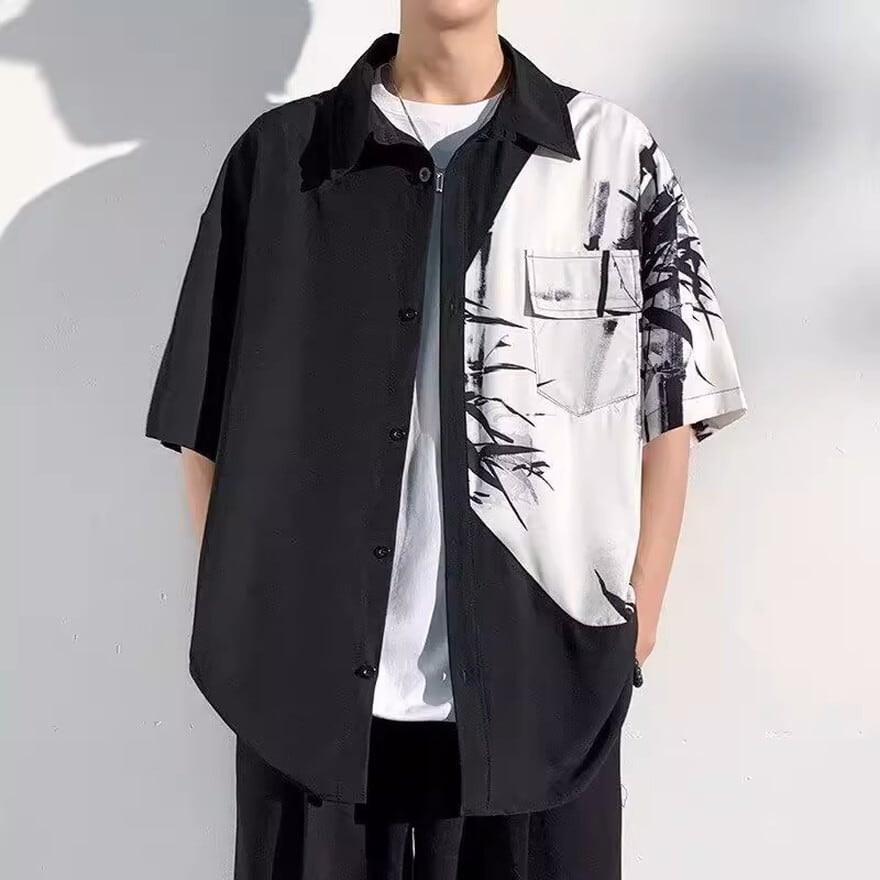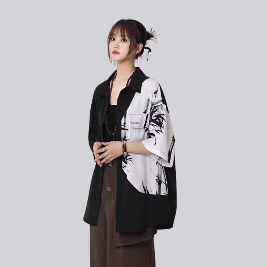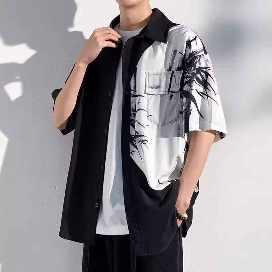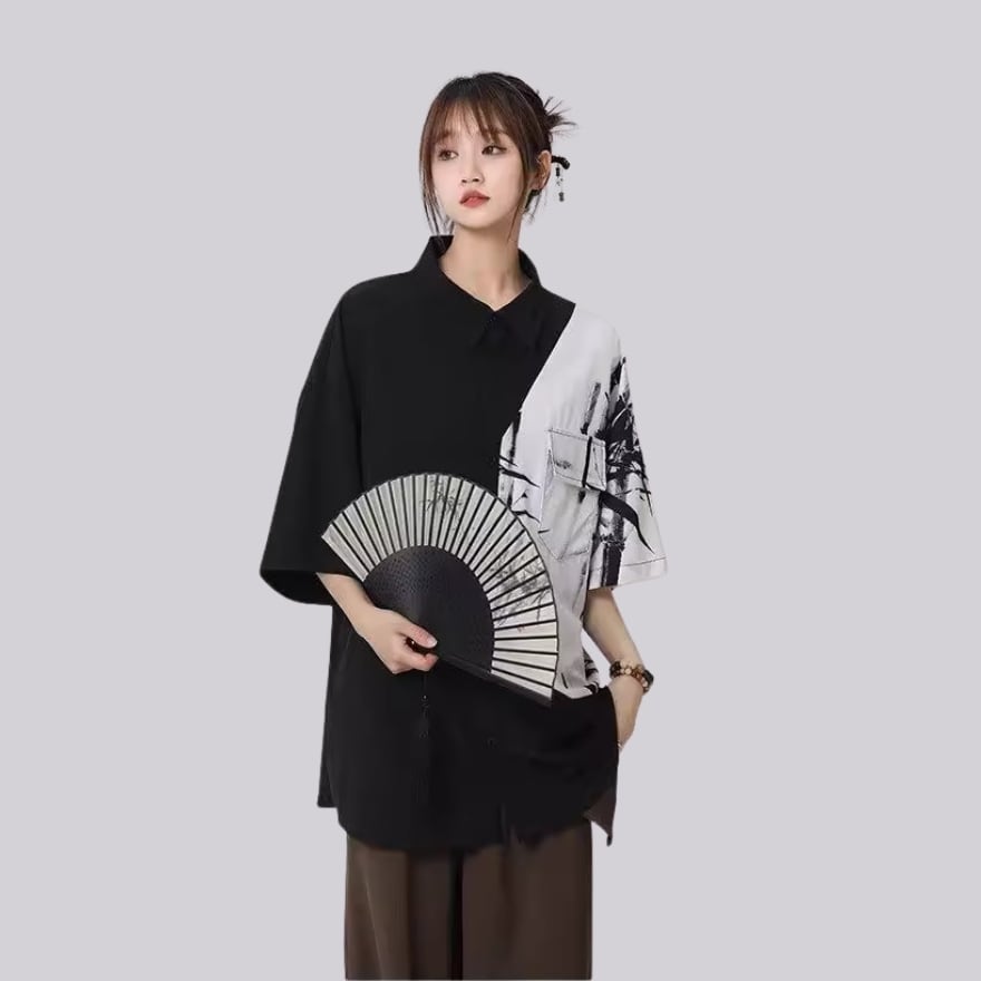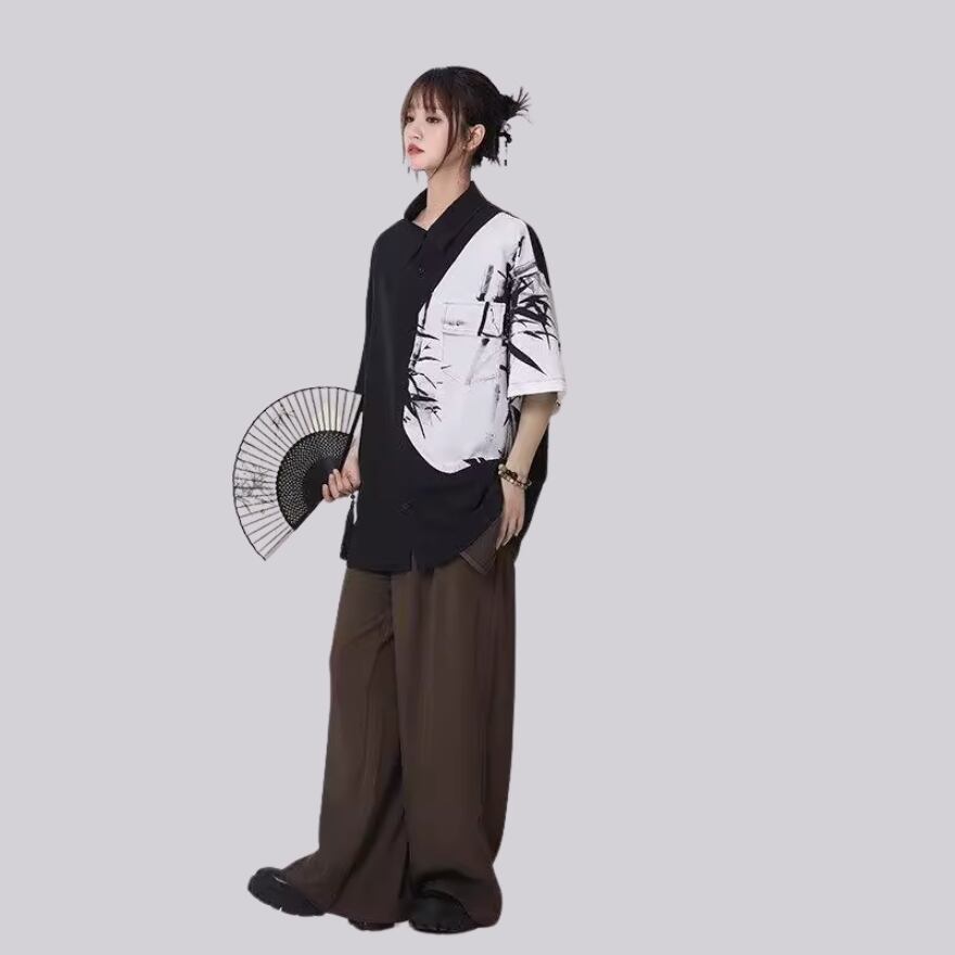 関連キーワード: #チャイナシャツ #レトロシャツ #半袖シャツ #ユニセックス #男女兼用 #オリエンタルファッション #アジアンテイスト #ストリートファッション #開襟シャツ #リラックスフィット