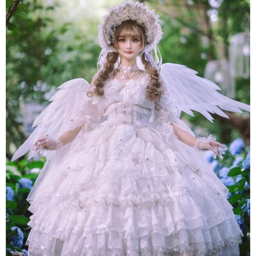 サブカル 服 地雷系 通販 スイートロリィタ ロリィタドレス 花嫁衣裳 ウエディング衣装 シフォン ジャンパースカート 猫妖精 エレガント イベント 結婚式 前撮り衣装 撮影会衣装