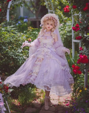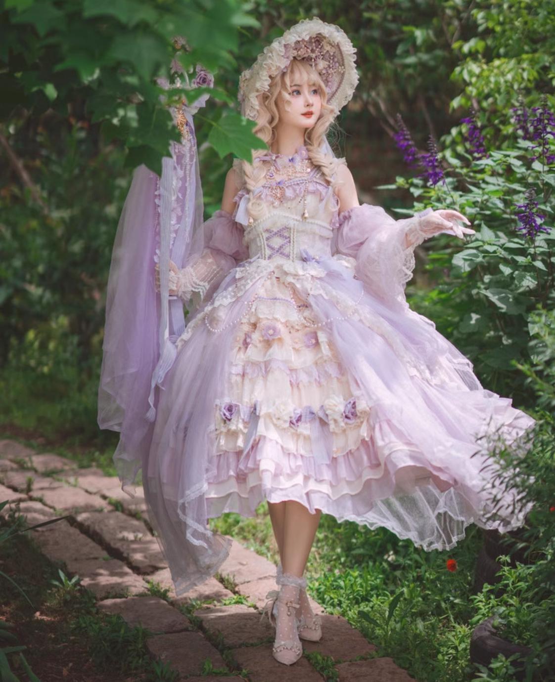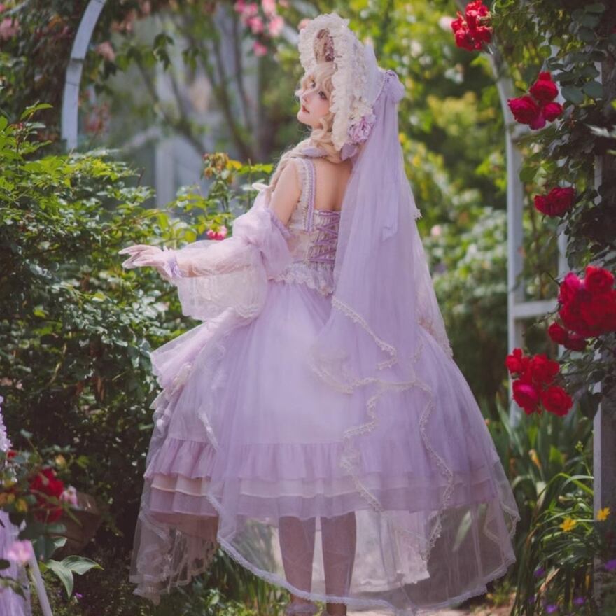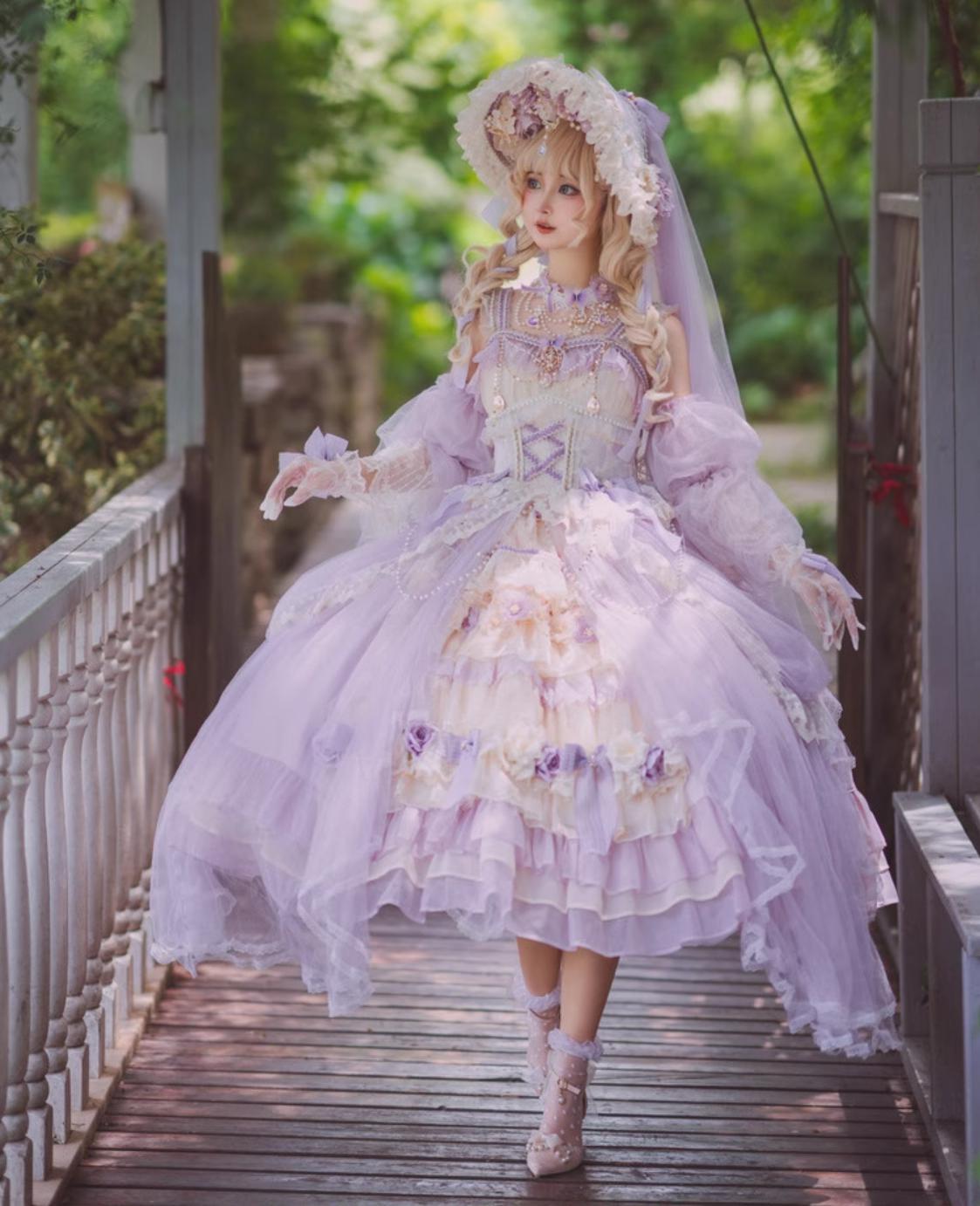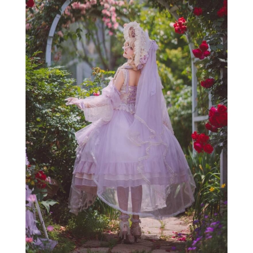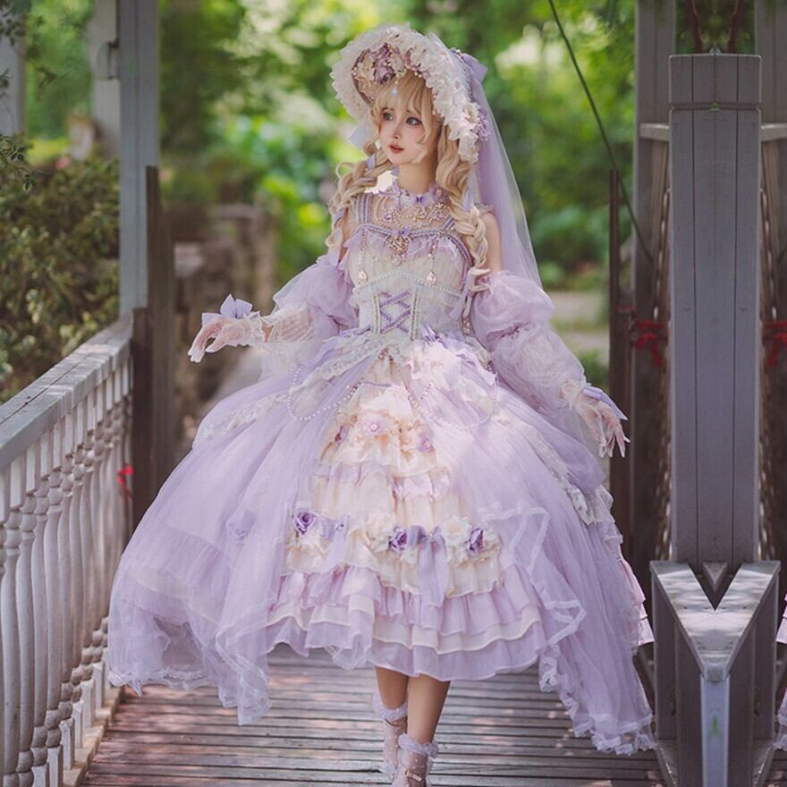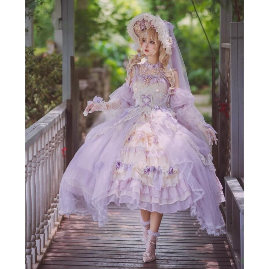 サブカル 服 地雷系 通販 スイートロリィタ プリンセスドレス ジャンパースカート パープル 花嫁茶会 猫妖精 エレガント イベント 撮影会衣装
