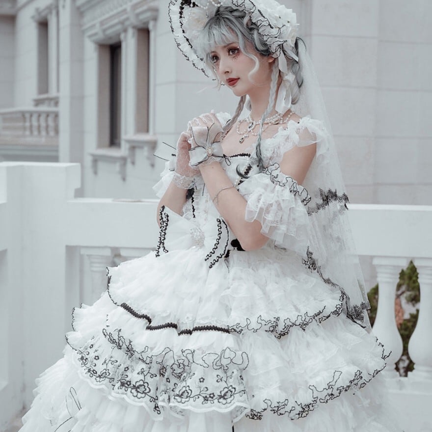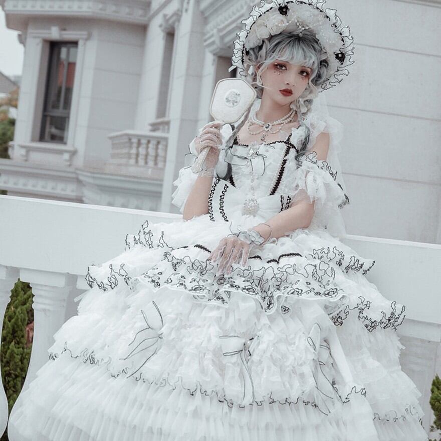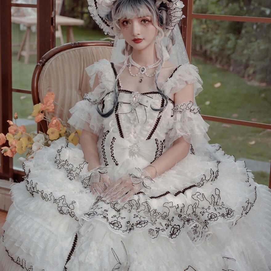 サブカル 服 地雷系 通販 スイートロリィタ ロリィタドレス 花嫁衣裳 ウエディング衣装 シフォン ジャンパースカート 猫妖精 エレガント イベント 結婚式 前撮り衣装 撮影会衣装