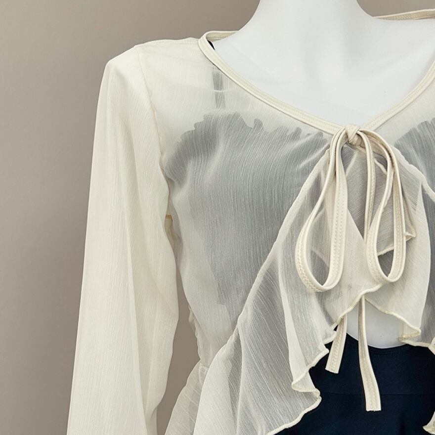 ラッシュガードとしても使える長袖トップスは、日差し対策や冷房対策にもぴったり。ビーチやプール、リゾートでの写真映えはもちろん、ガーリーなコーディネートを楽しみたい方にもおすすめです。