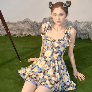 関連キーワード: #ワンピース水着 #花柄水着 #油絵風 #フローラルプリント #フリル水着 #リボンストラップ #リゾートウェア #ビーチスタイル #レトロ水着 #写真映え #体型カバー #ボタニカル