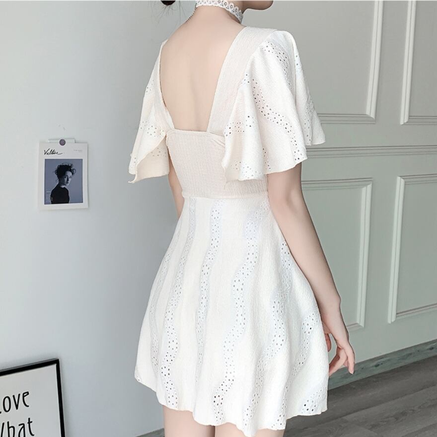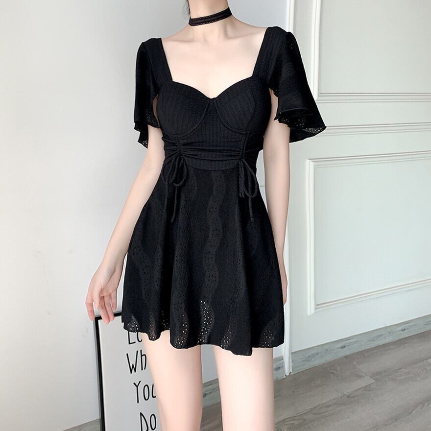 サブカル 服 地雷系 通販 水着 ホワイト ブラック 大きいサイズ ワンピースタイプ 体型カバー スクエアネック 30代